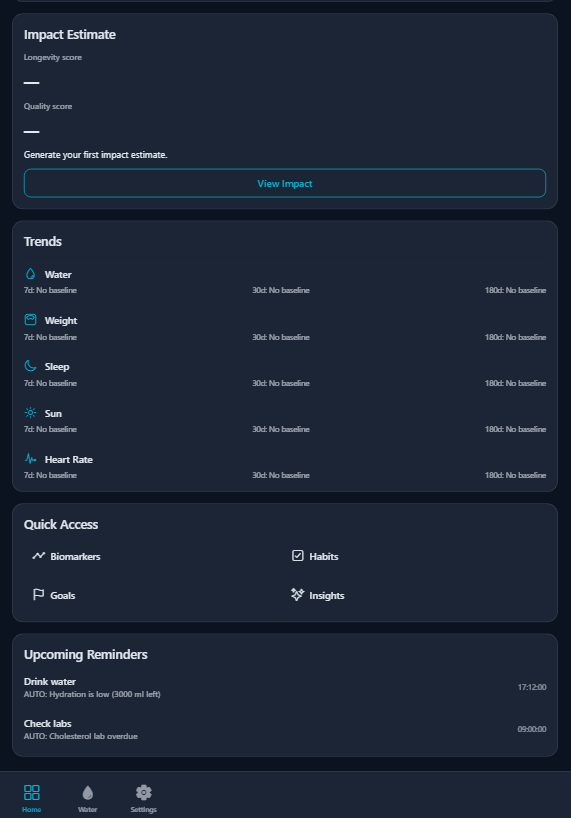 Track how habits shift your biomarkers over time. See what changes, what stalls, and what deserves your focus next.